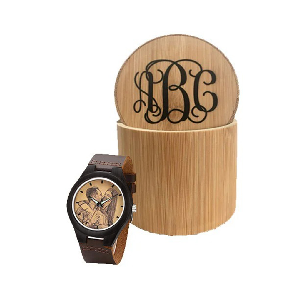 Surprise your loved one with a custom photo watch which is purely custom made to fit any personality. The handcrafted ebony wooden case matched with leather strap make the look and texture even more fashionable. The image of design is directly printed onto the inside of watch surface. Please do remember high resolution picture will come out better than the preview. Personalized with the message of your choice, this custom watch will be displayed with pride for years to come. It’s a great gift for groomsmen, boyfriends, husbands and fathers alike.